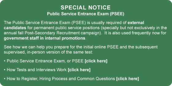 We provide personal training for EX and non-EX interviews; SELEX, Simulation, In-Basket and Written Test coaching; Recruitment of Policy Leaders (RPL) and Advanced Policy Analyst Program (APAP) application and interview preparation; tailored Resumés and Cover Letters that meet job poster and statement of merit requirements; and one-on-one Reference Coaching, Debriefing, Presentation Skills and International Careers Training.